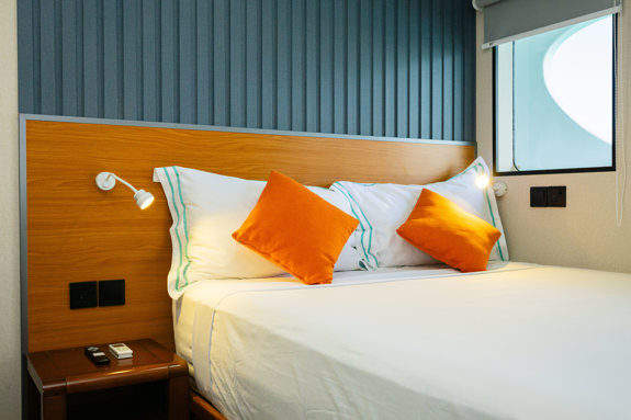 Kajuty na hlavní palubě s hezkým výhledem na moře. TV, DVD, MP3, klimatizace, WC, sprcha